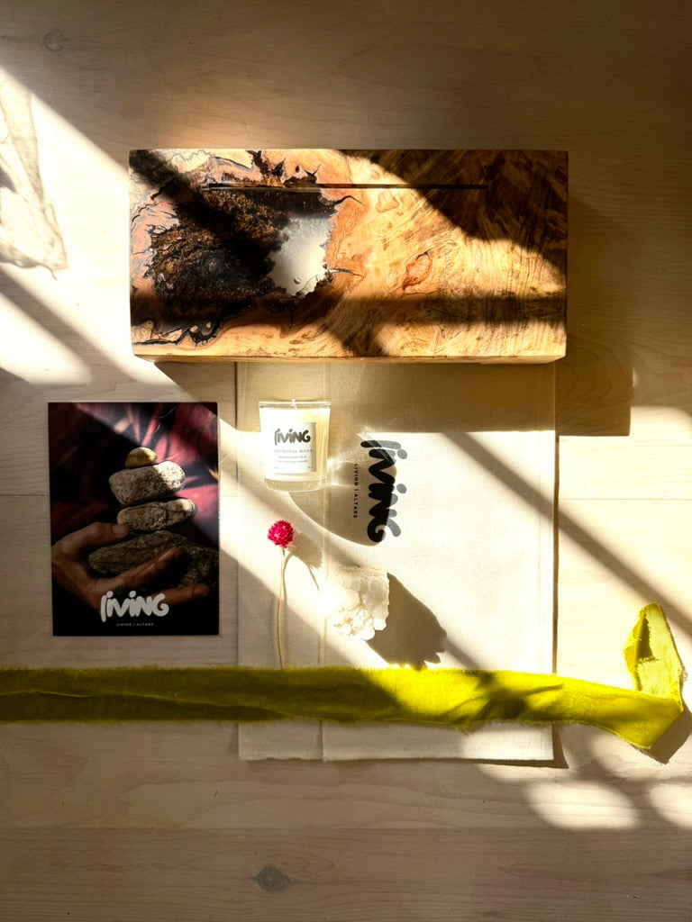Each altar is carved from a single piece of sustainably harvested cherry, poplar, or walnut wood and blessed by fire ceremony. Every element is selected to support clarity, presence and the quiet power that lives inside you.